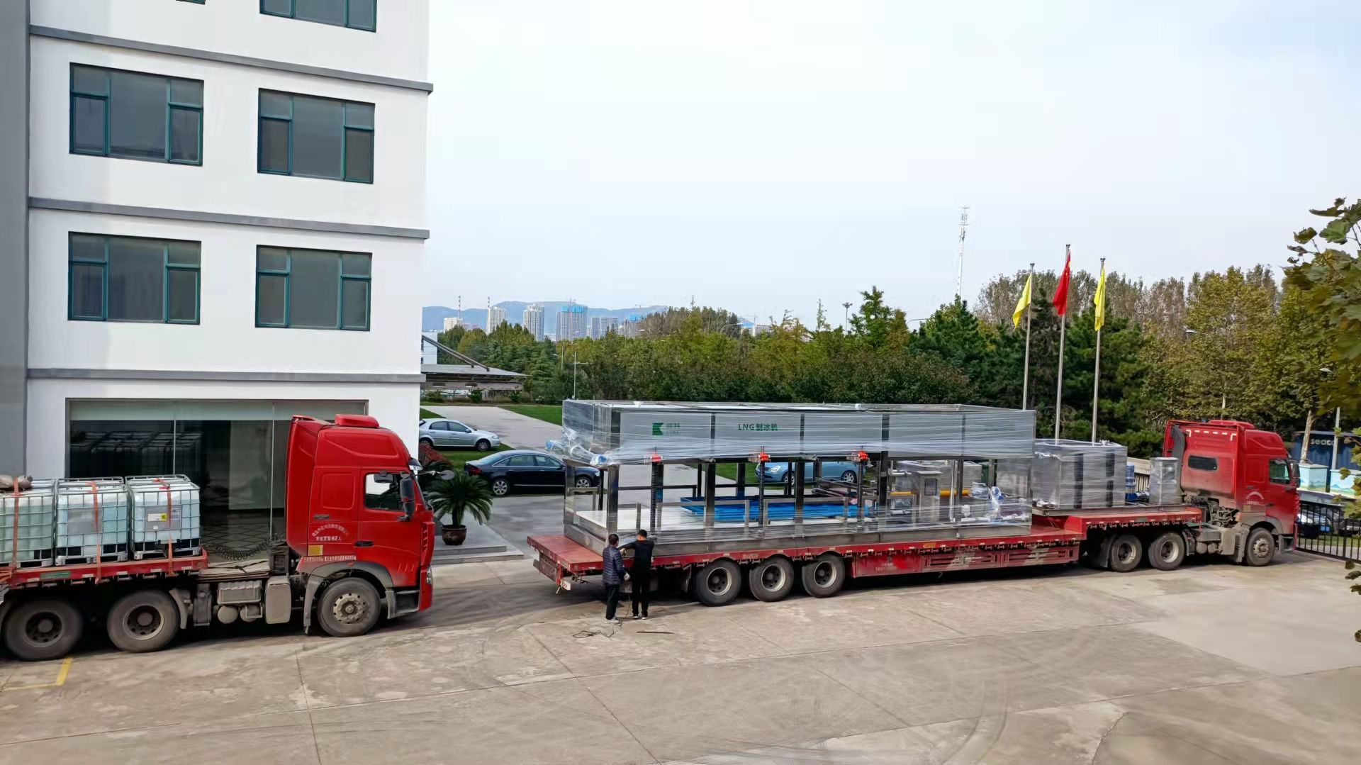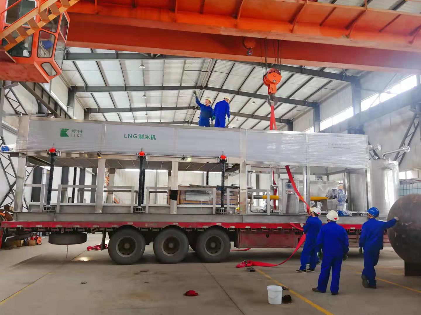 2021年10月20日下午3時,青島綠科兩臺LNG制冰機按時按量發(fā)往蘇州。歷經(jīng)兩個月的工期,本著最優(yōu)品質,提高效率,公司工作人員加班加點,克服各種困難,保證了按時出貨。青島綠科的LNG制冰機生產(chǎn)已經(jīng)實現(xiàn)規(guī)?;拖到y(tǒng)化,這也為后期迎接大批量訂單做好了準備。