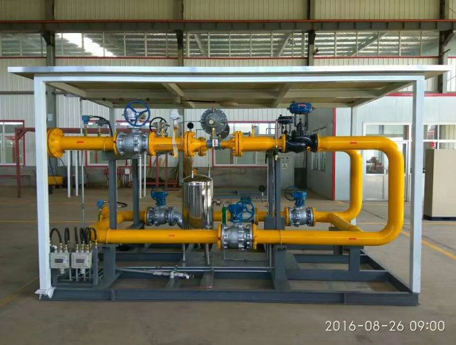 城市門站調(diào)壓撬是對天然氣長輸管路進入城市前需要在城市門站將高壓管路氣體降壓和計量的一種裝置。我公司生產(chǎn)的城市門站調(diào)壓撬可根據(jù)客戶要求量身定制。調(diào)壓器、切斷閥、放散閥、流量計等均采用國內(nèi)外優(yōu)質(zhì)名牌,以保證設(shè)備的高質(zhì)量、高精度和高可靠性。產(chǎn)品采用一路調(diào)壓、一路備用,緊急切斷閥與調(diào)壓器的切斷閥雙重保險,從而可靠地保證了下游管線的安全。設(shè)有高精度過濾器。壓力設(shè)定簡單,調(diào)壓精確穩(wěn)定可靠。