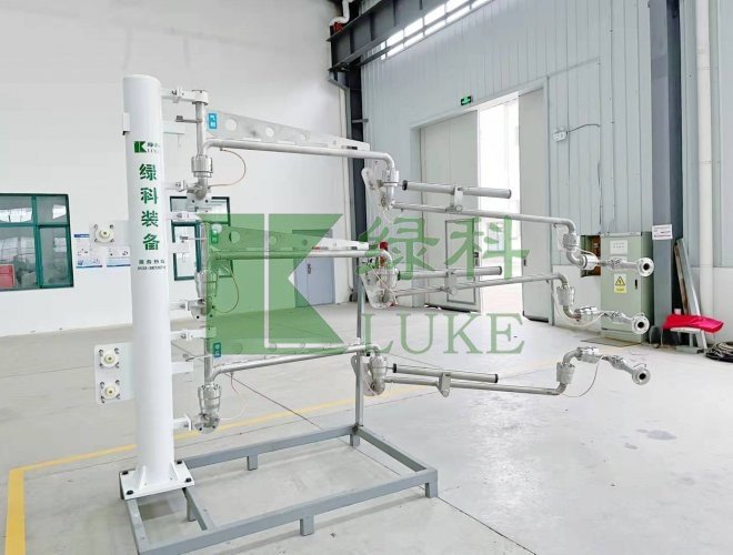無氮氣保護裝置裝卸車臂:裝卸車臂由液相臂、氣相臂、增壓臂組成。卸車臂的轉(zhuǎn)向閥采用特殊密封,保證空氣不會進入轉(zhuǎn)向閥的內(nèi)部,避免了出現(xiàn)轉(zhuǎn)向閥結(jié)冰無法轉(zhuǎn)動的現(xiàn)象。該裝卸車臂不用氮氣保護系統(tǒng),減少了設(shè)備投資和后期運行過程中購買氮氣消耗的費用。