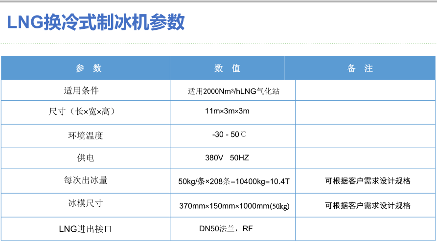 我公司最新研發(fā)生產(chǎn)的新型的LNG換冷式制冰機,可以將LNG中的冷能進(jìn)行有效利用--制成冰塊,冰塊用于生產(chǎn)和日常生活中,變廢為寶,可獲得可觀的經(jīng)濟(jì)效益。